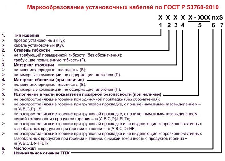 В спецификации кабеля скрыты его свойства. Зная марку кабеля, мы можем точно определить его применение (см. схему)